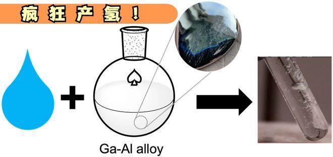 如果你还记得高中化学的知识就应该知道,金属铝在遇水之后,会在表面形成一层致密的氧化膜,从而隔绝空气,停止被氧化。这种复合材料中的镓则可以去除铝的氧化膜,让氧化反应持续进行,并且还能够源源不断地产生铝,使得化学反应能够迅速、持续地进行。